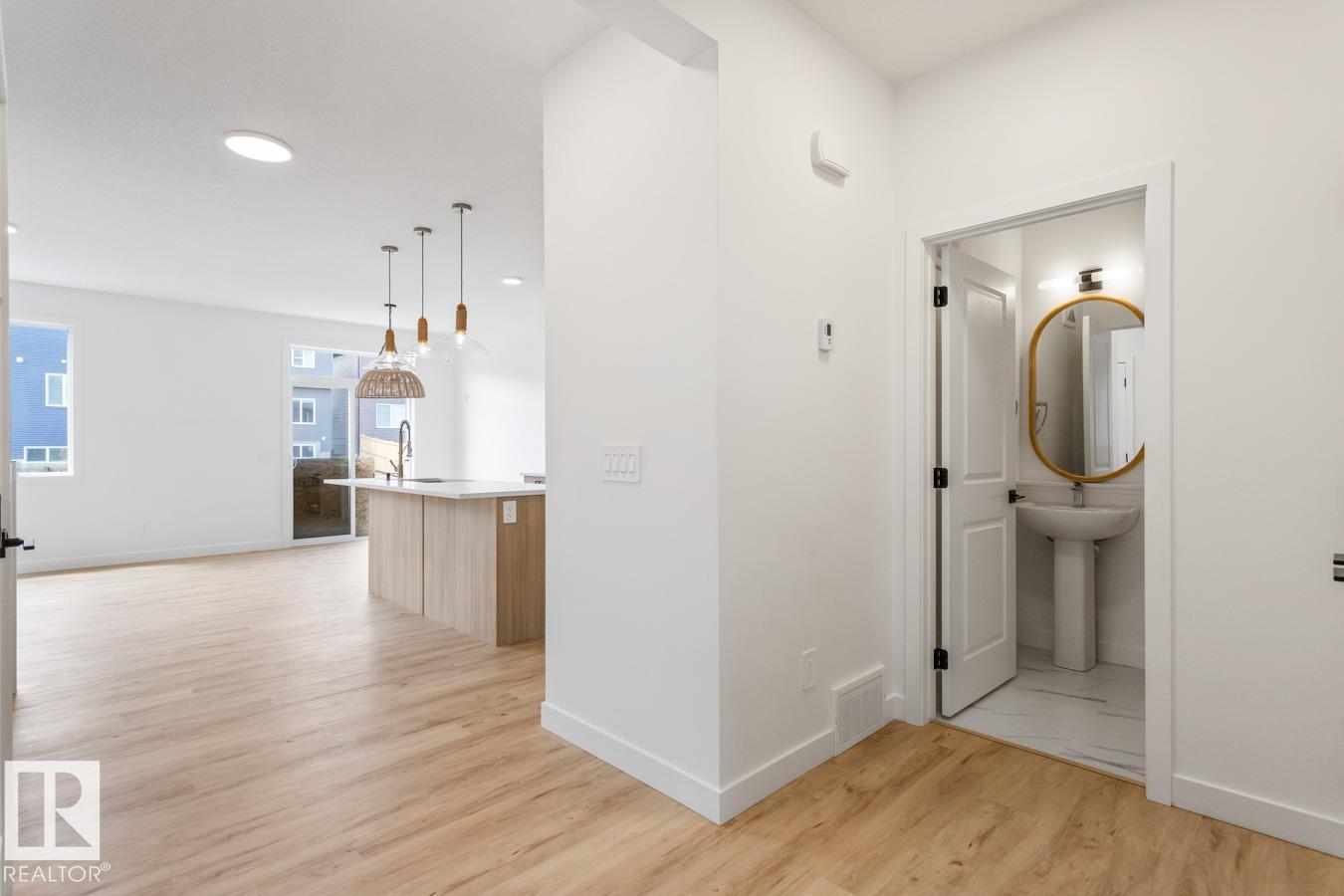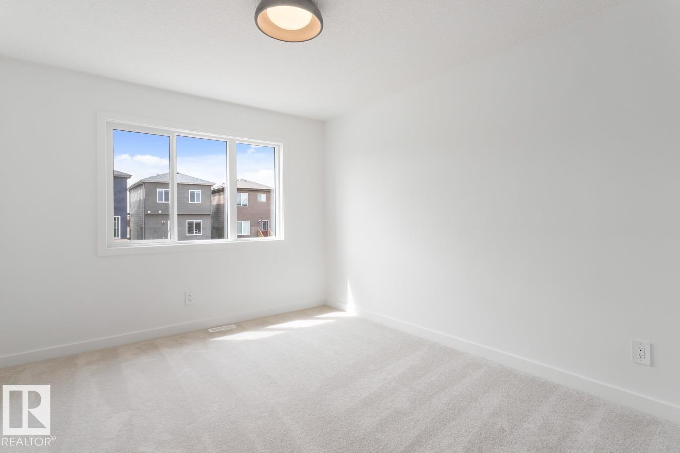 Welcome to Cambrian in Sherwood Park! This move-in ready Landon model by award-winning Rohit Homes offers 1,565 sq ft with 3 bedrooms, 2.5 baths plus a double attached garage. Finished in an Ethereal Zen Designer Interior, designed to bring a sense of tranquility and lightness to everyday living. The open-concept main floor features a modern kitchen with quartz island, pantry and abundant cabinetry overlooking the dining and living areas. 9' ceilings enhance the bright main floor. Upstairs you'll find a spacious primary suite with walk-in closet and 5-piece ensuite with dual sinks, two additional bedrooms, full bath, upstairs laundry and a versatile flex room. Separate side entrance provides excellent potential for a future basement suite. Highlights include triple-pane windows and FRONT & BACK LANDSCAPING INCLUDED. Appliance, blind and AC packages available through the builder. Steps from parks, playgrounds and trails with easy access to the Henday. Photos may not reflect exact home.