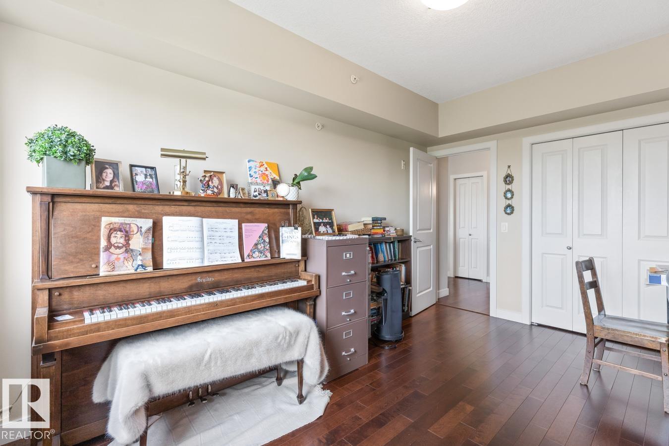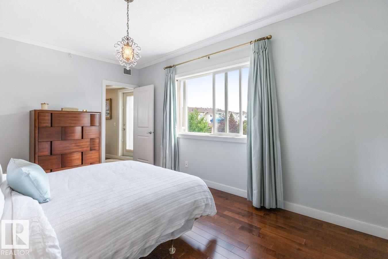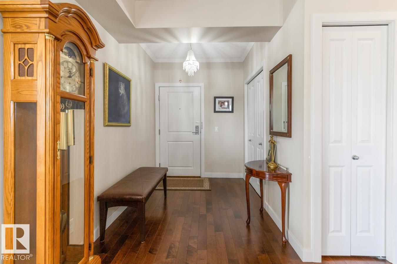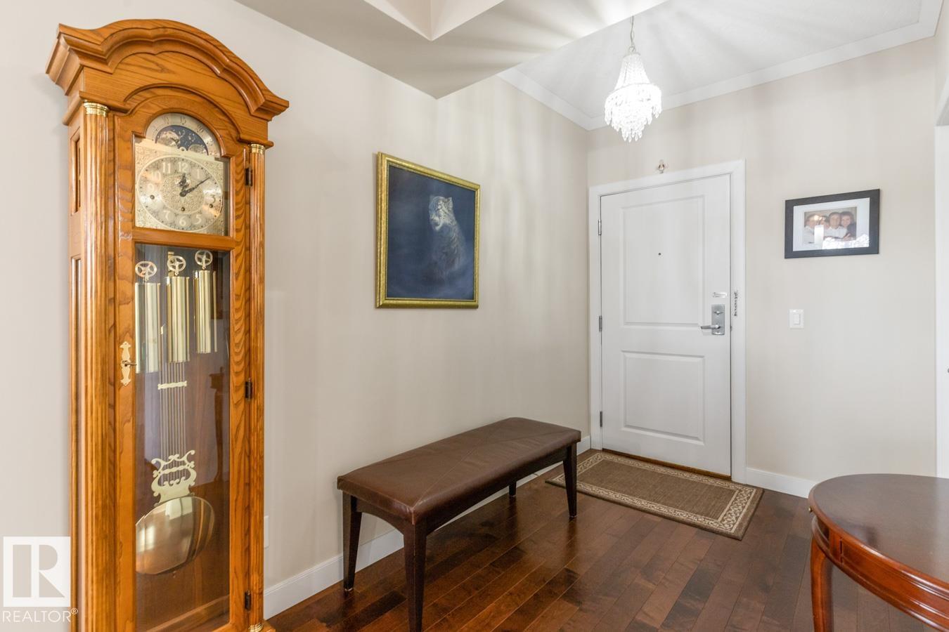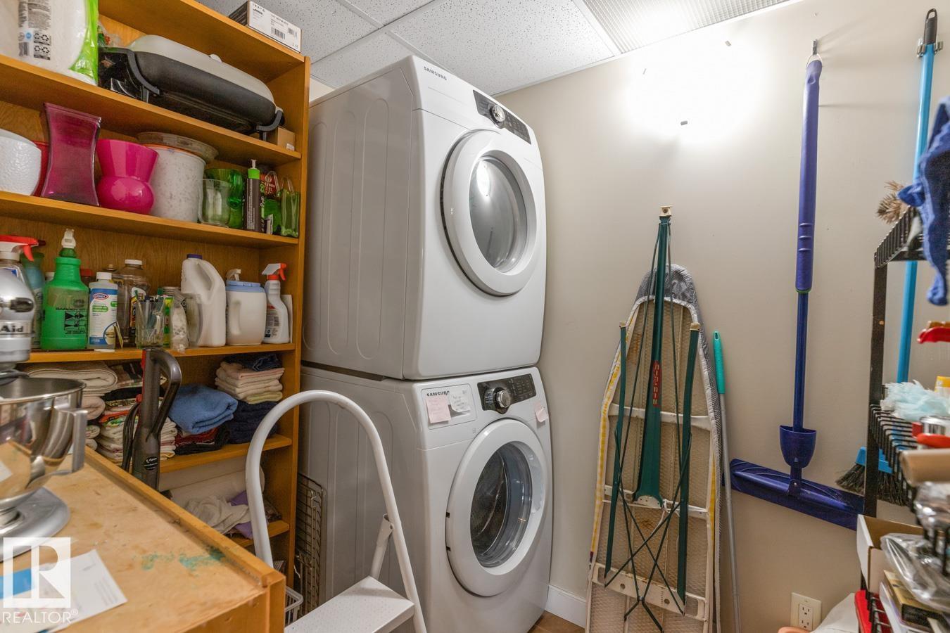 Wake up to treetop views & total privacy in this RARE TOP FLOOR retreat, perfectly located in a sought-after 45+ complex. Offering A/C, TWO titled tandem underground parking stalls with storage cage, 2 bedrooms & 2 baths, this home blends comfort with quiet sophistication. A wide entry opens to an airy, sun-filled layout where oversized windows frame peaceful views. The kitchen is both stylish & functional with granite countertops, S/S appliances, pantry, tile backsplash & raised breakfast bar. The open living & dining space flows seamlessly to a SOUTH-facing 107sqft patio, your private spot to unwind. The generous 10.5x15 primary suite features a WI closet & private 3pc ensuite, while a well-sized 2nd bedroom, 4pc bath & in-suite laundry/storage complete the design. Enjoy a secure, well-managed building with video security, ample guest parking, & an inviting lobby ideal for social gatherings. Condo fees include heat & water. A peaceful, low-maintenance lifestyle close to parks, shopping & dining!