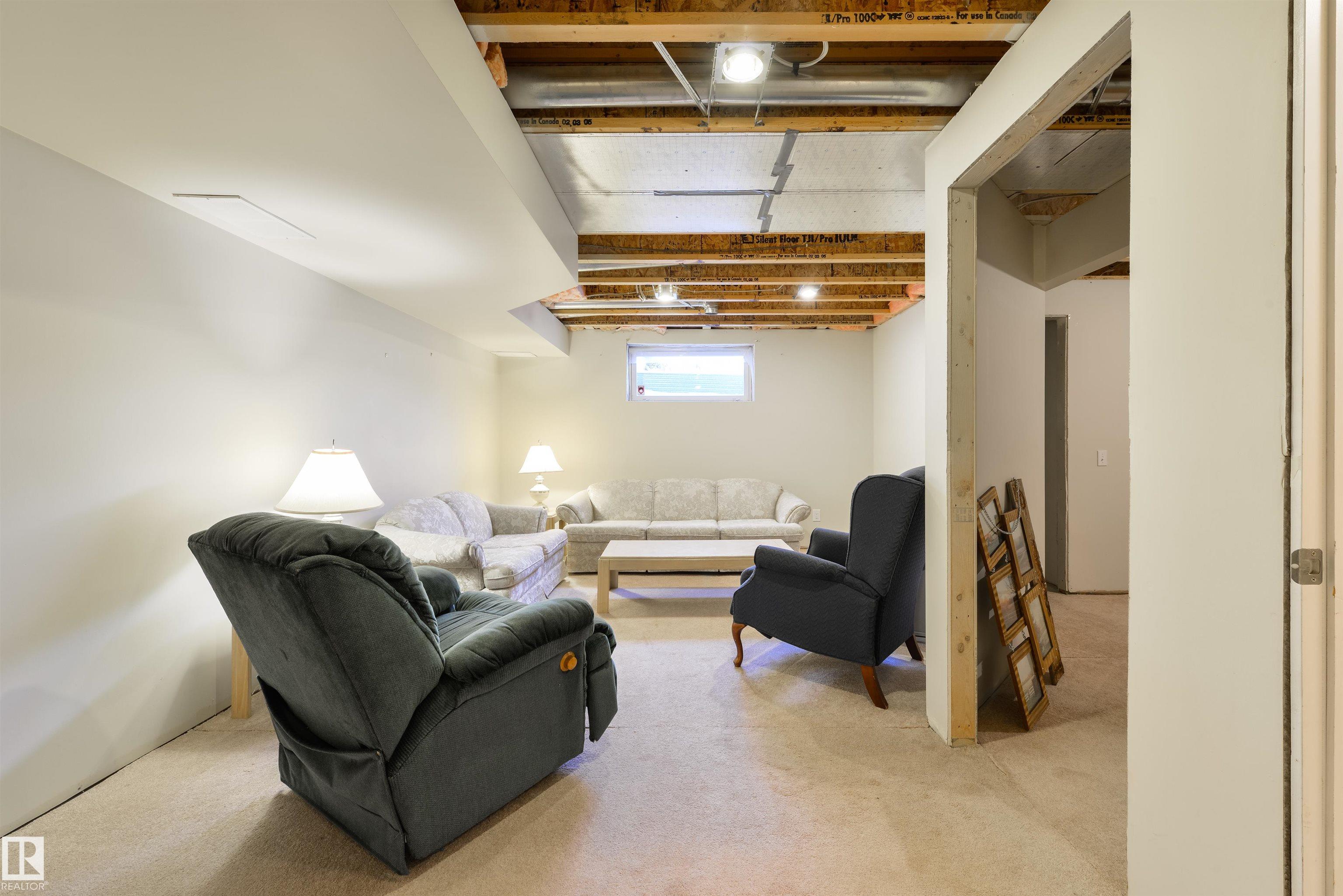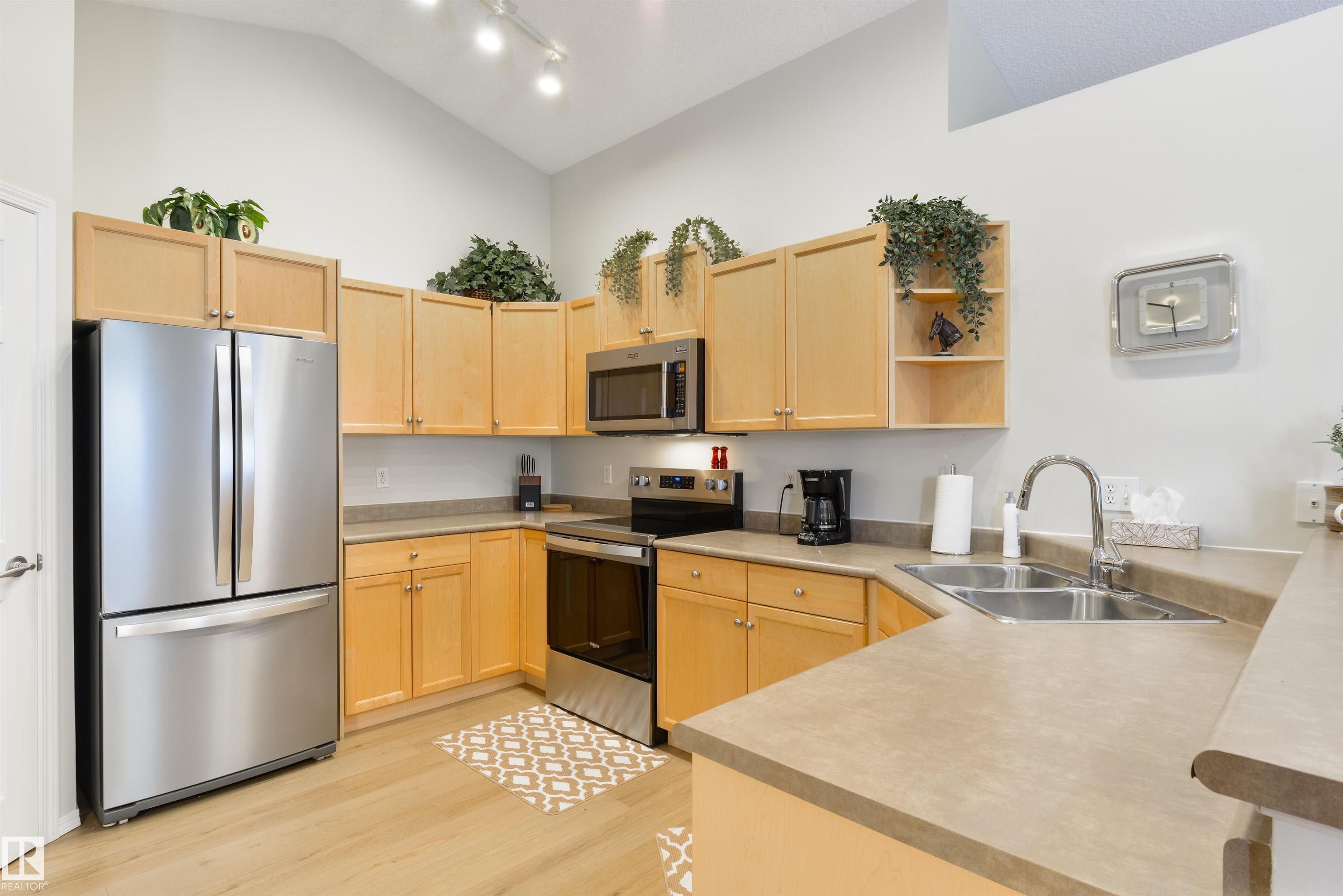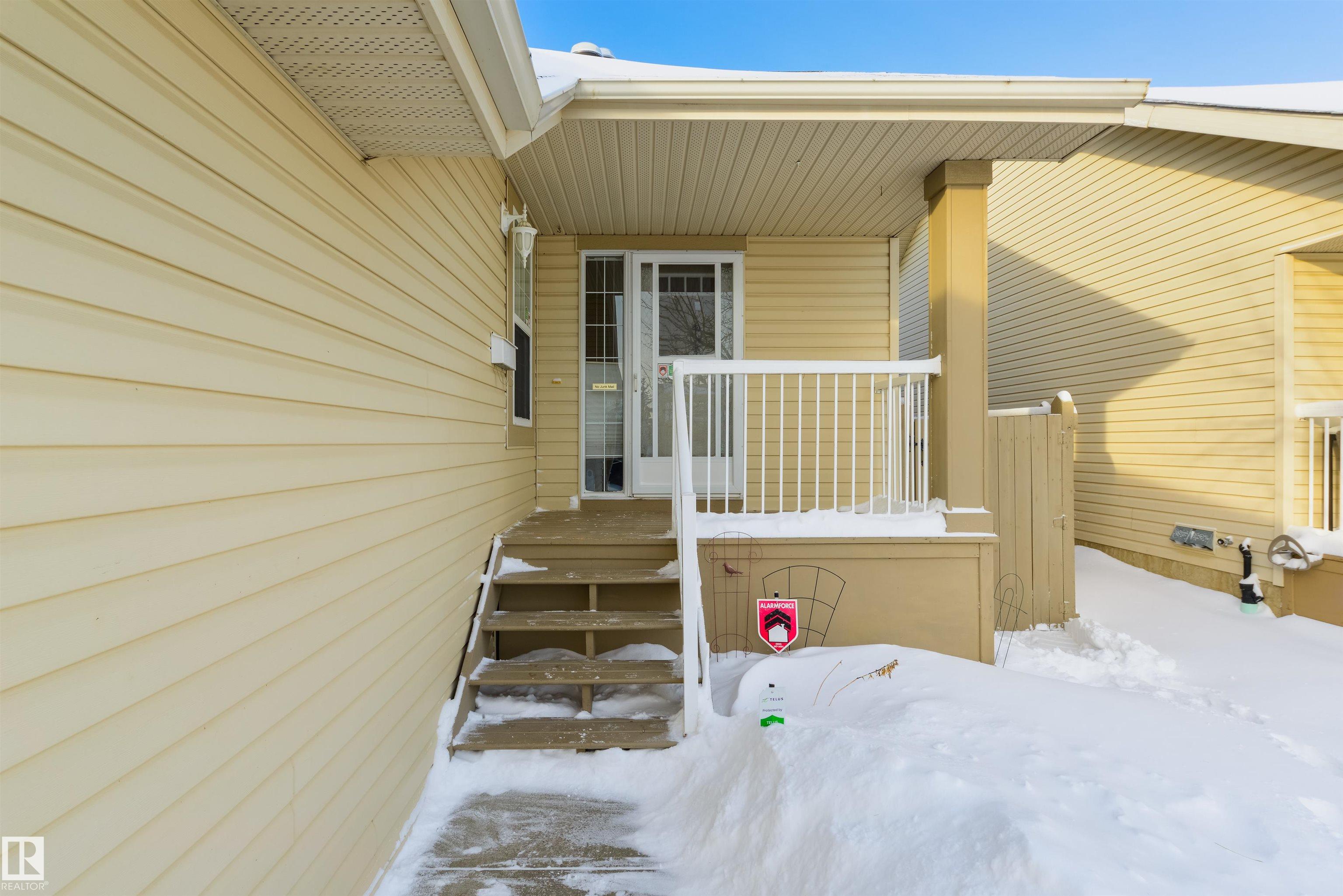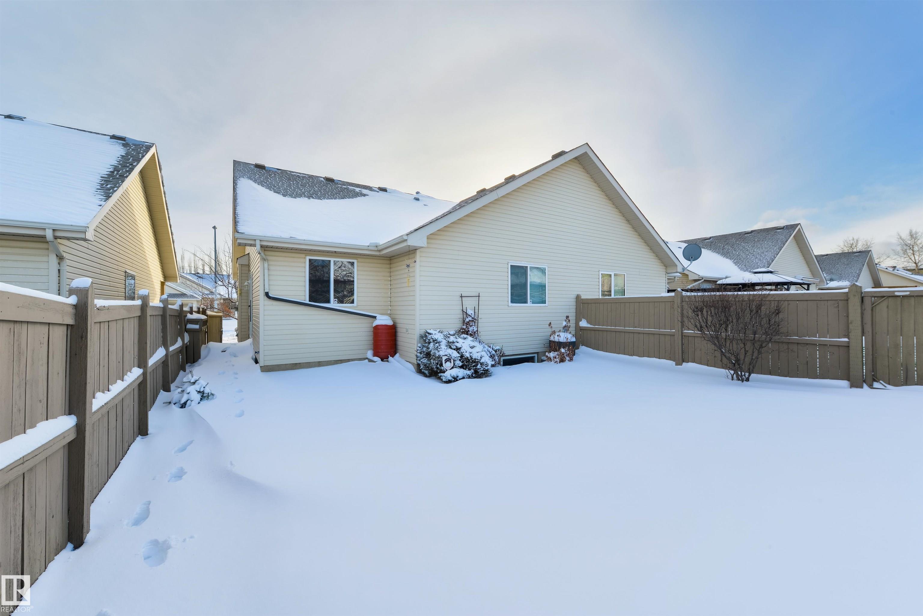 Enjoy low-maintenance living with a $125/month HOA covering lawn care and snow removal. The landscaped yard features perennials, raspberries, and rhubarb. This 1,100 sq ft half-duplex bungalow in quiet Christina Court offers vaulted ceilings and two solar tubes that fill the open living, dining, and kitchen area with natural light. A gas fireplace adds warmth, and abundant cabinetry makes entertaining easy. Main-floor laundry adds convenience. New lamintae flooring. Two bedrooms include a king-sized primary with walk-in closet and 4-pc ensuite. Central A/C keeps you cool. The basement is 75% finished--framed and drywalled for a family room, bedroom, den, and 2-pc bath (vanity ready). With a side entrance and plumbing for a second washer/dryer, it's ideal for a nanny or in-law suite. Insulated double garage, NEW Kitchen appliances included, no age restrictions.