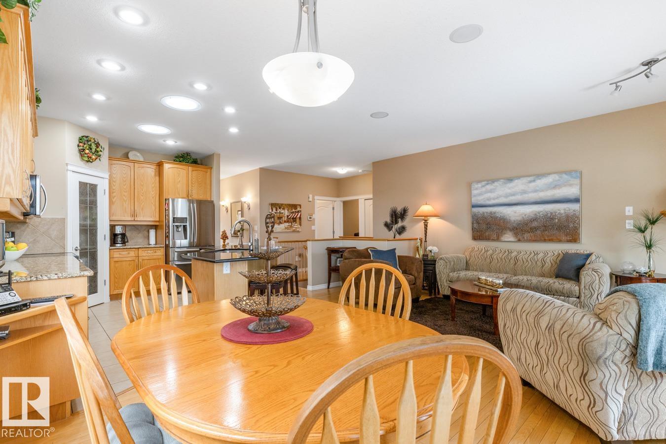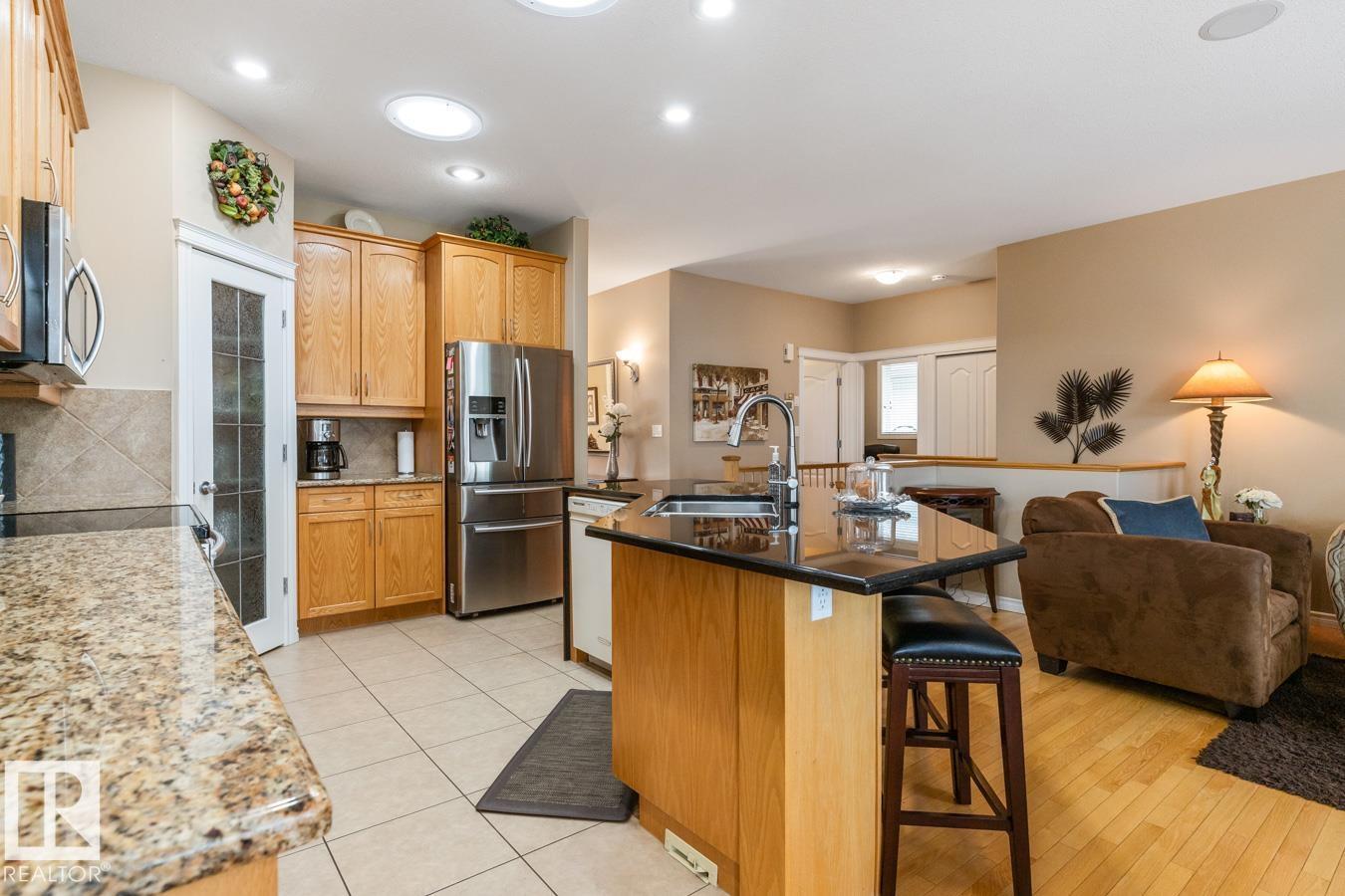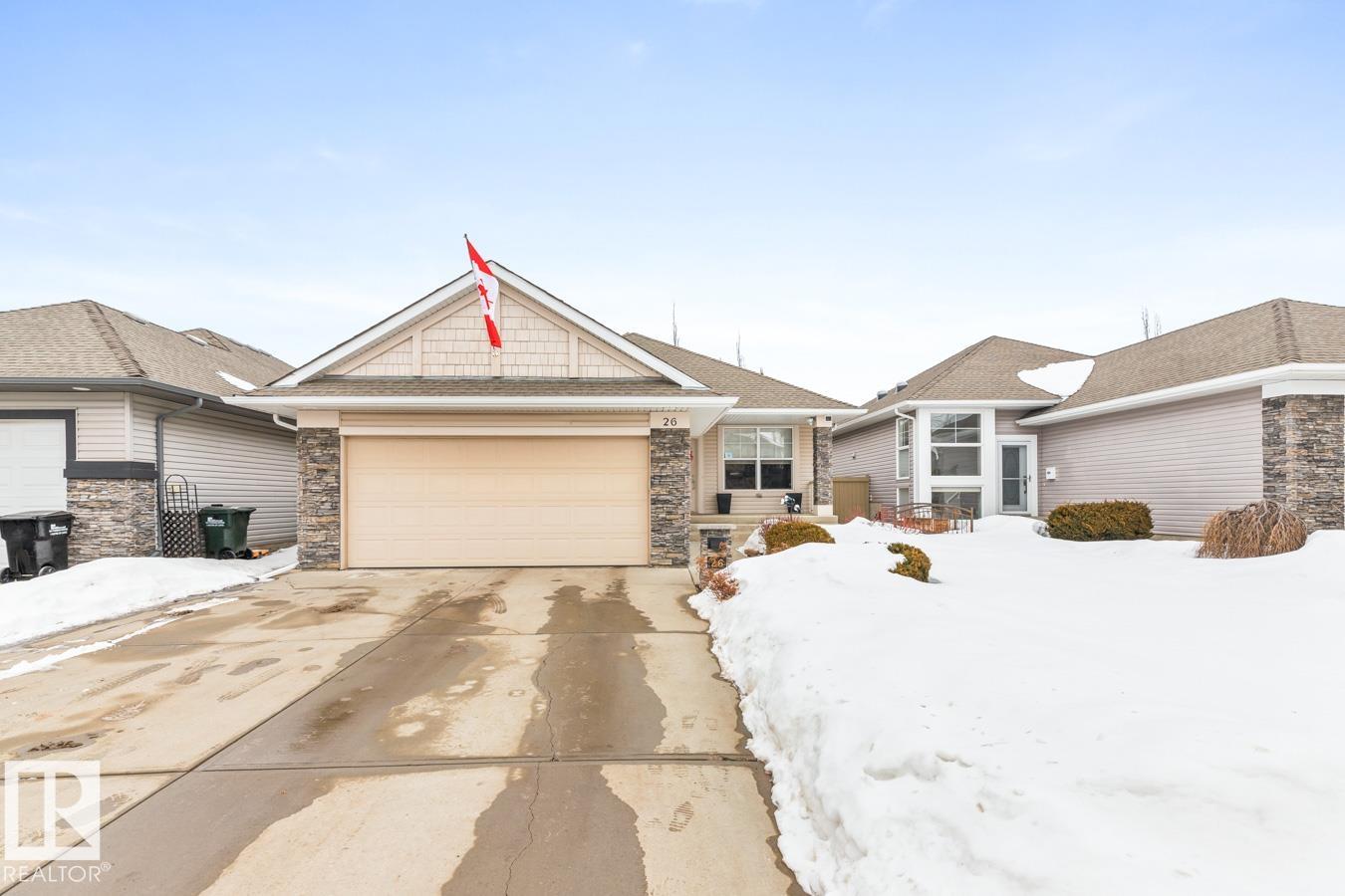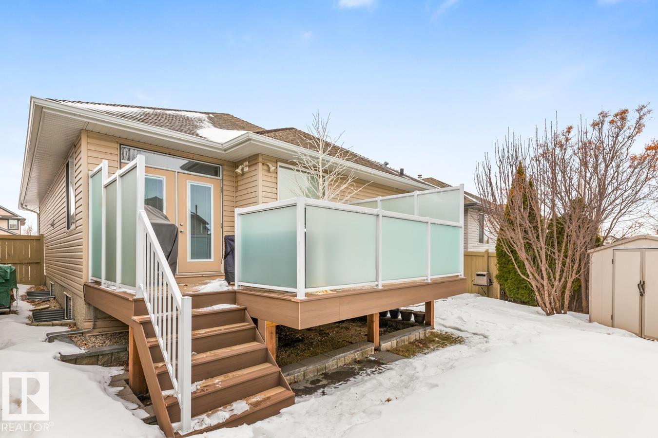 This IMMACULATE Salvi-built bungalow is tucked away on a quiet street in the desirable community of The Ridge and is ready for its next family. Step inside to a bright, open layout featuring 9' ceilings with tile and hardwood flooring throughout. The kitchen offers ample cabinetry, corner pantry, stainless steel appliances, and a granite waterfall island overlooking the dining and living area with cozy fireplace. The king-sized primary suite features a walk-in closet and ensuite with 5' shower and makeup vanity. A generous second bedroom with walk-in closet, 4-pc bath, flex room, and laundry complete the main floor. The fully finished basement boasts a spacious family room with second fireplace, two additional bedrooms, 3-pc bath, and large storage room. Enjoy the fully fenced, landscaped yard with maintenance-free deck and 8x8 shed. 25x20 heated garage, A/C, and an unbeatable location close to schools, parks, trails, and amenities complete this exceptional home.