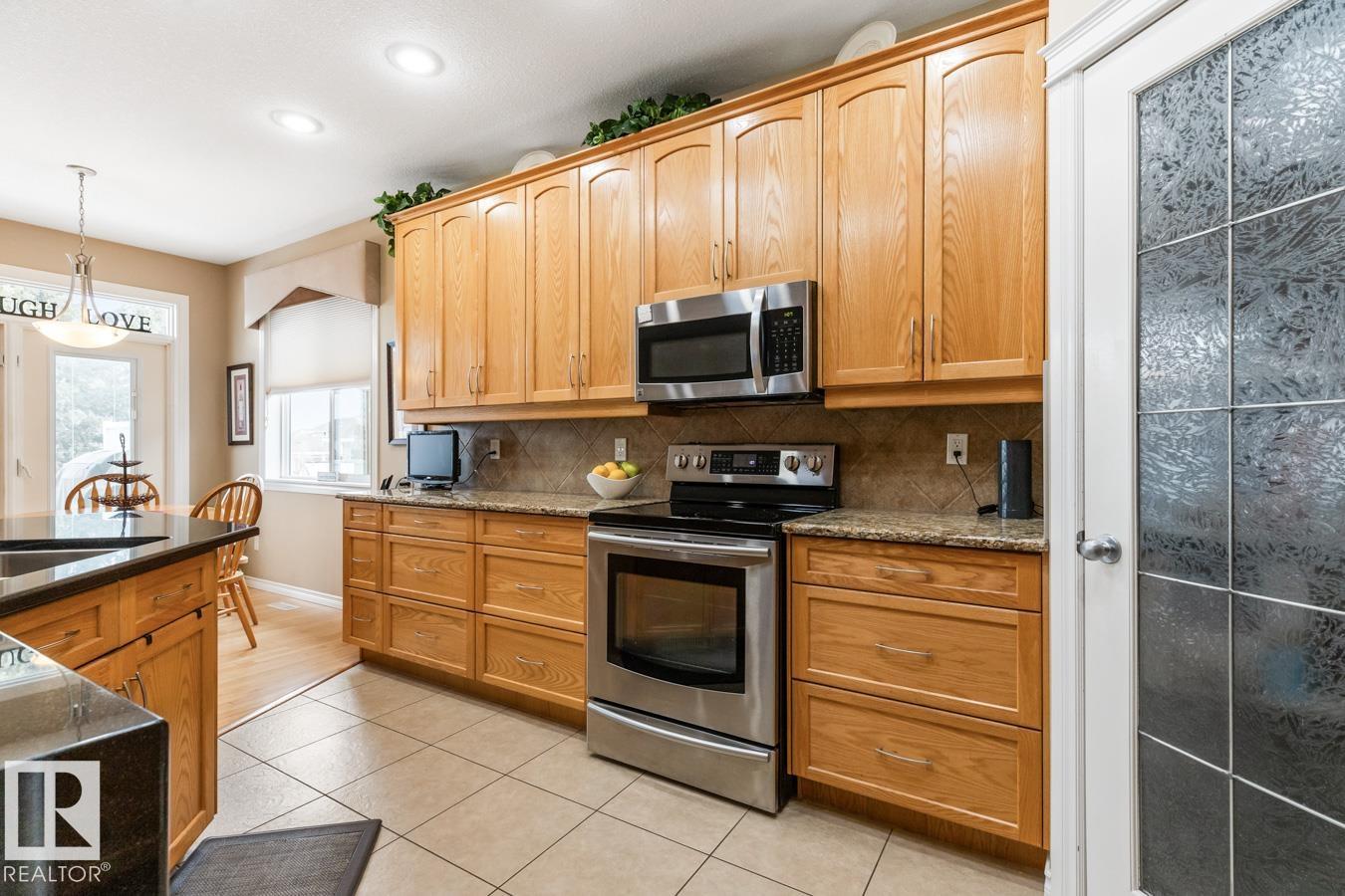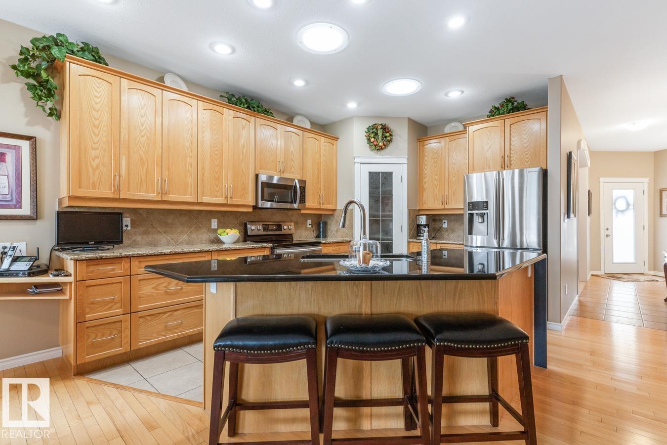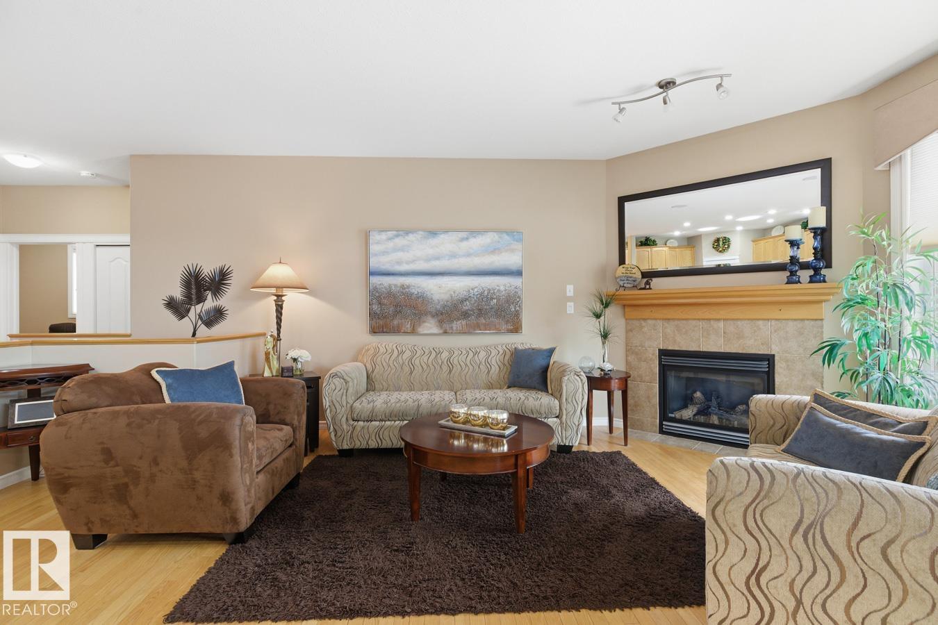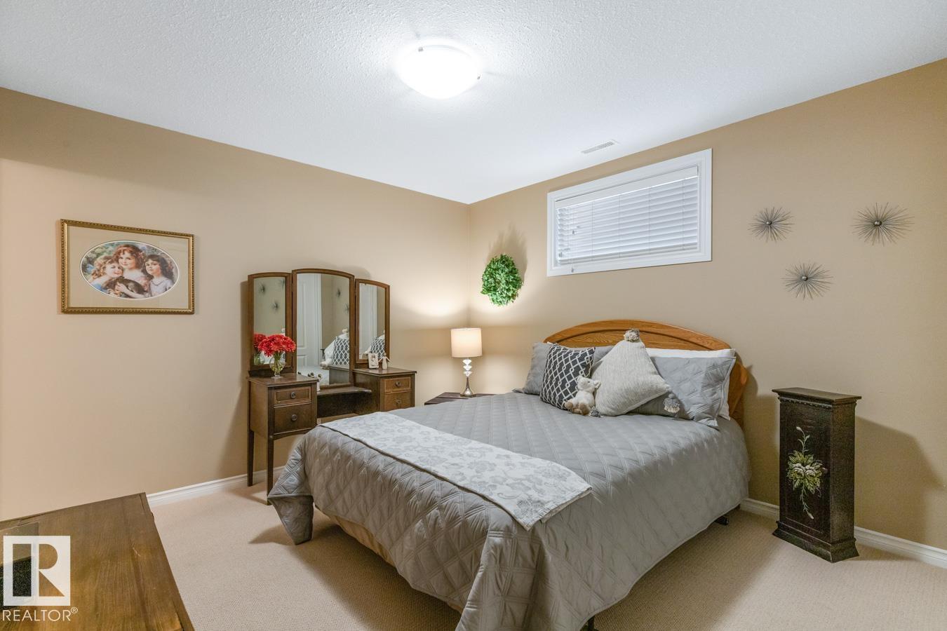 This IMMACULATE Salvi-built bungalow is tucked away on a quiet street in the desirable community of The Ridge and is ready for its next family. Step inside to a bright, open layout featuring 9' ceilings with tile and hardwood flooring throughout. The kitchen offers ample cabinetry, corner pantry, stainless steel appliances, and a granite waterfall island overlooking the dining and living area with cozy fireplace. The king-sized primary suite features a walk-in closet and ensuite with 5' shower and makeup vanity. A generous second bedroom with walk-in closet, 4-pc bath, flex room, and laundry complete the main floor. The fully finished basement boasts a spacious family room with second fireplace, two additional bedrooms, 3-pc bath, and large storage room. Enjoy the fully fenced, landscaped yard with maintenance-free deck and 8x8 shed. 25x20 heated garage, A/C, and an unbeatable location close to schools, parks, trails, and amenities complete this exceptional home.