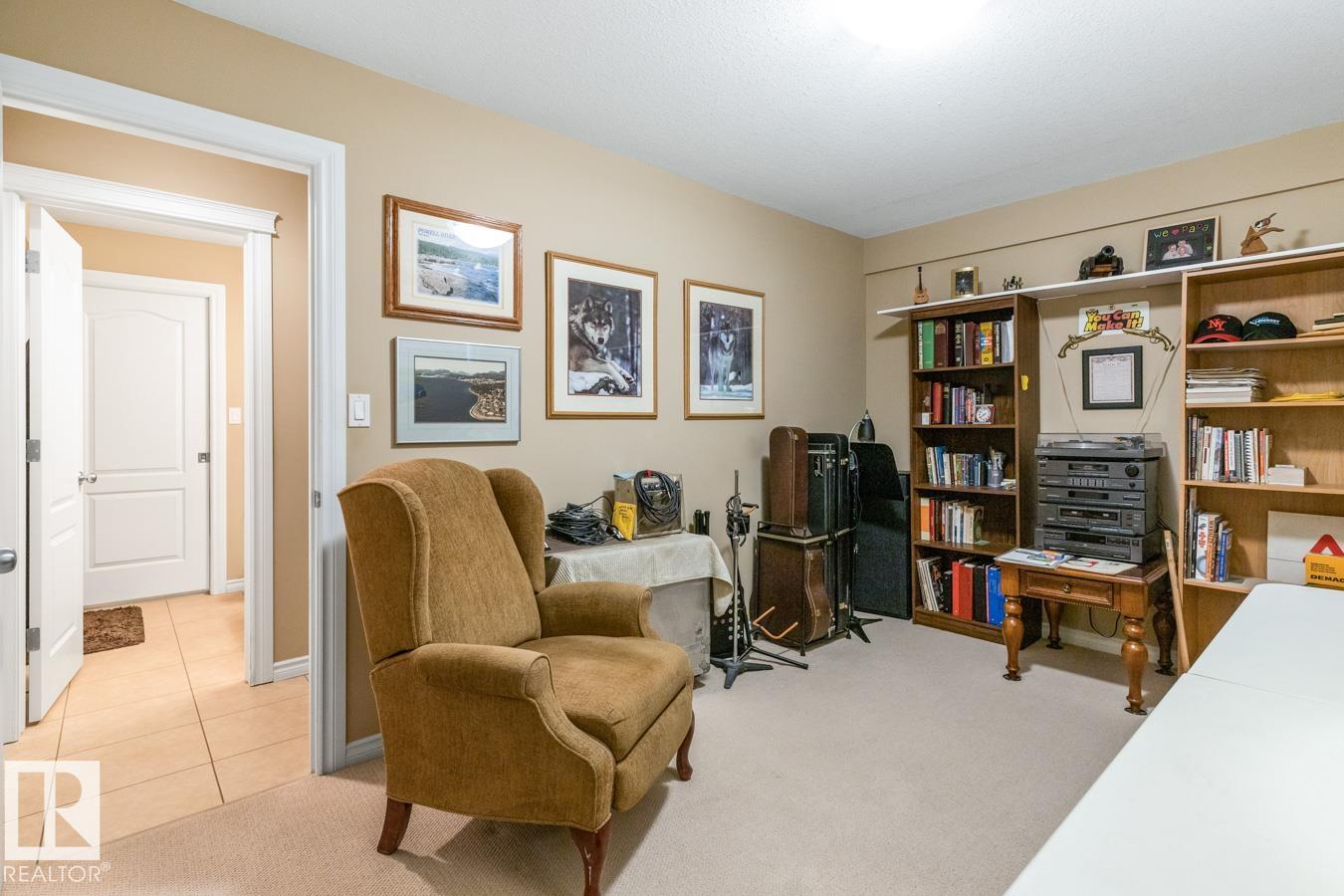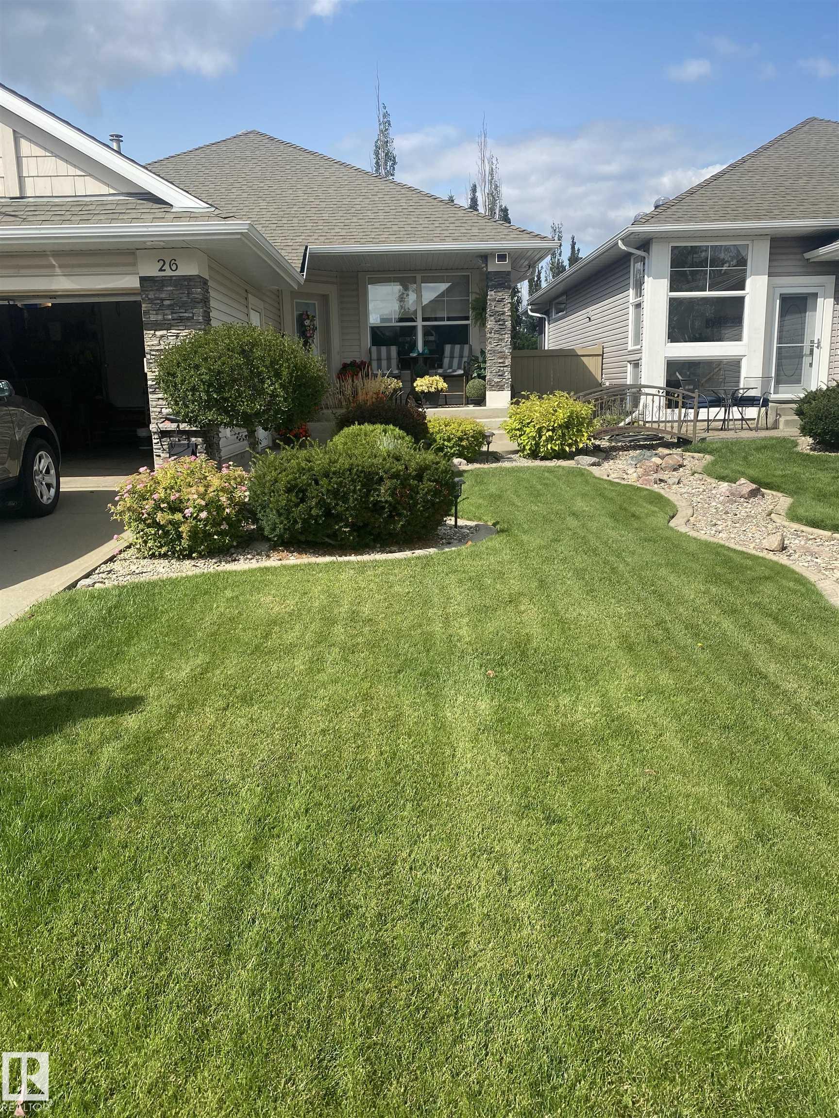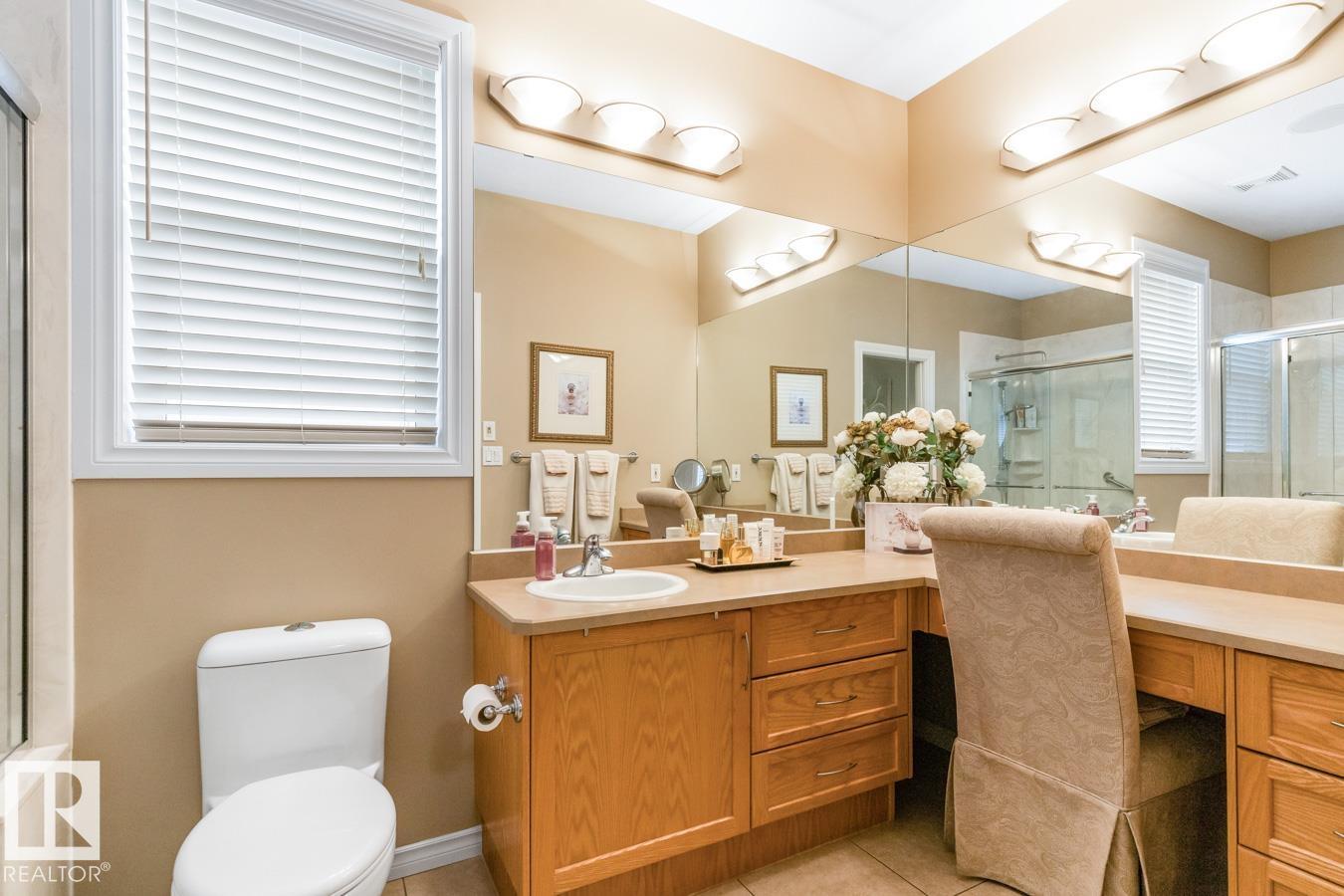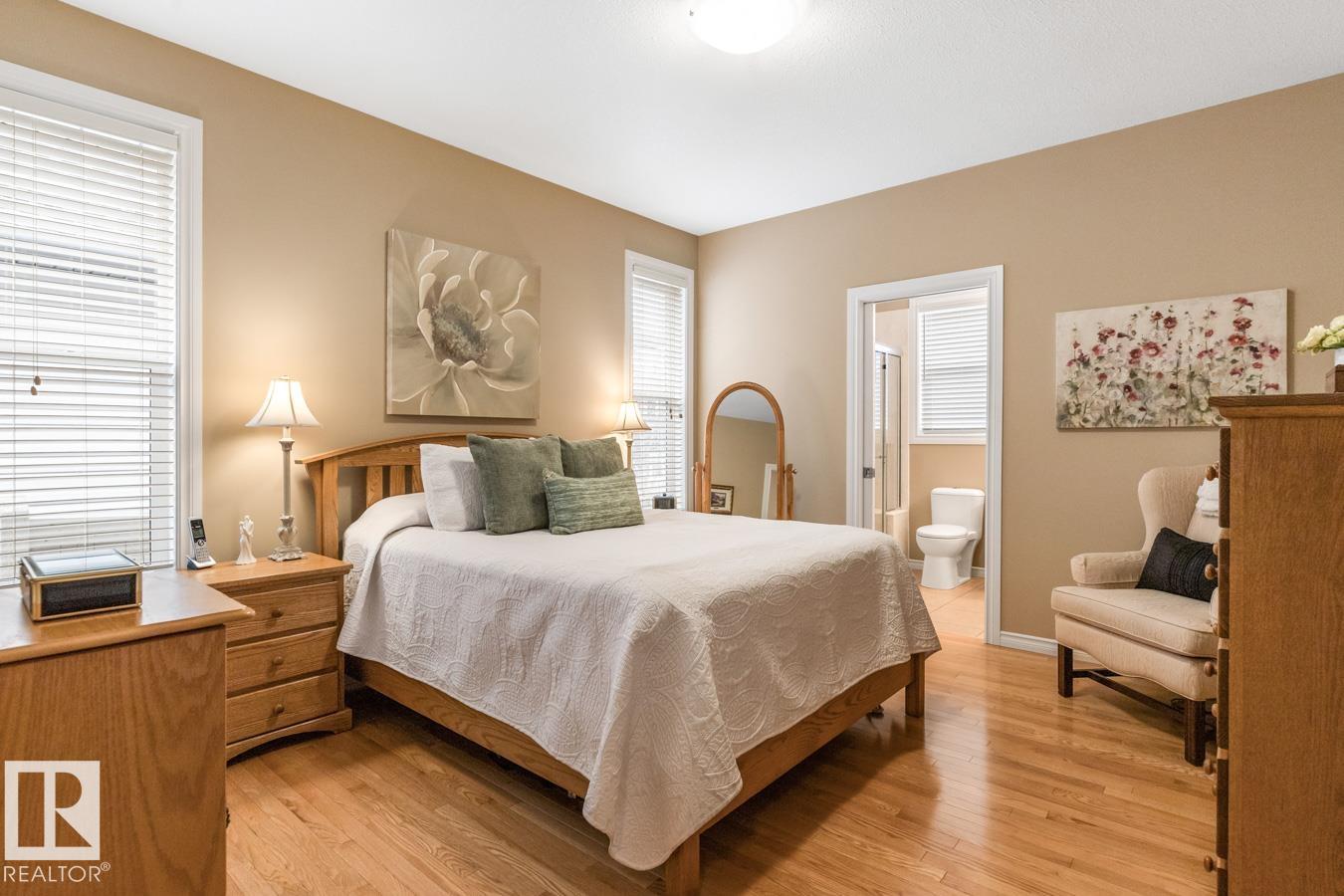 This IMMACULATE Salvi-built bungalow is tucked away on a quiet street in the desirable community of The Ridge and is ready for its next family. Step inside to a bright, open layout featuring 9' ceilings with tile and hardwood flooring throughout. The kitchen offers ample cabinetry, corner pantry, stainless steel appliances, and a granite waterfall island overlooking the dining and living area with cozy fireplace. The king-sized primary suite features a walk-in closet and ensuite with 5' shower and makeup vanity. A generous second bedroom with walk-in closet, 4-pc bath, flex room, and laundry complete the main floor. The fully finished basement boasts a spacious family room with second fireplace, two additional bedrooms, 3-pc bath, and large storage room. Enjoy the fully fenced, landscaped yard with maintenance-free deck and 8x8 shed. 25x20 heated garage, A/C, and an unbeatable location close to schools, parks, trails, and amenities complete this exceptional home.