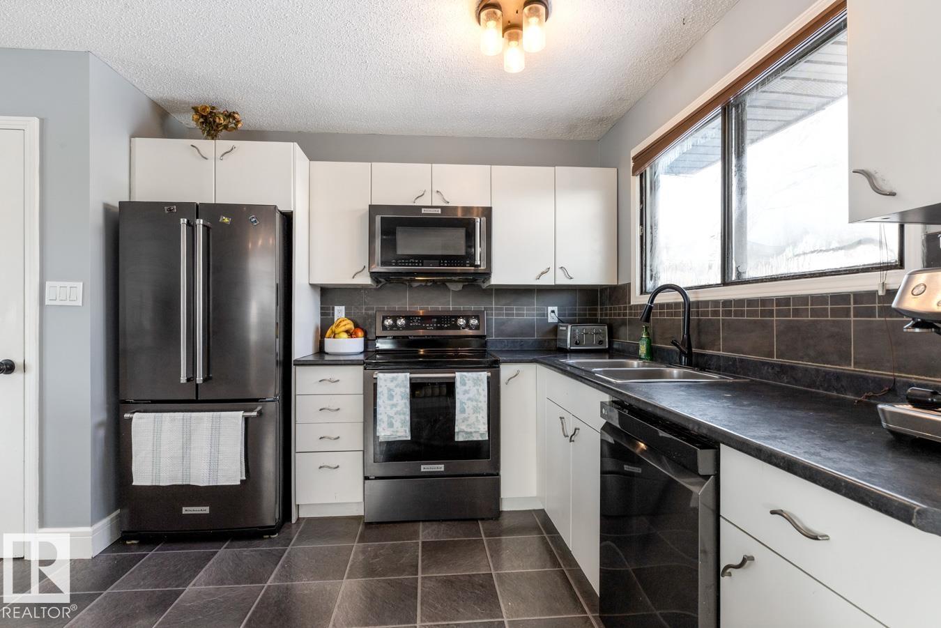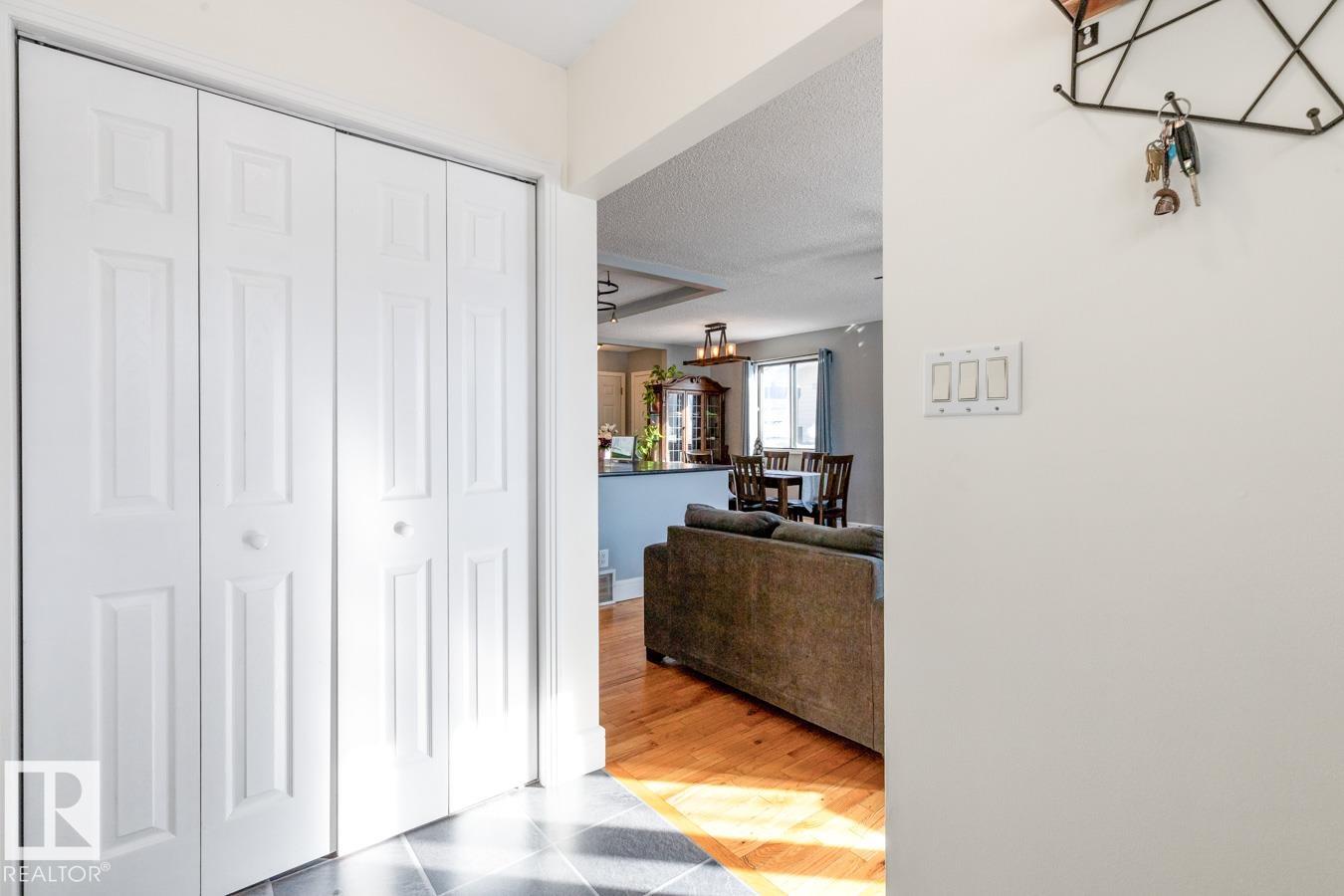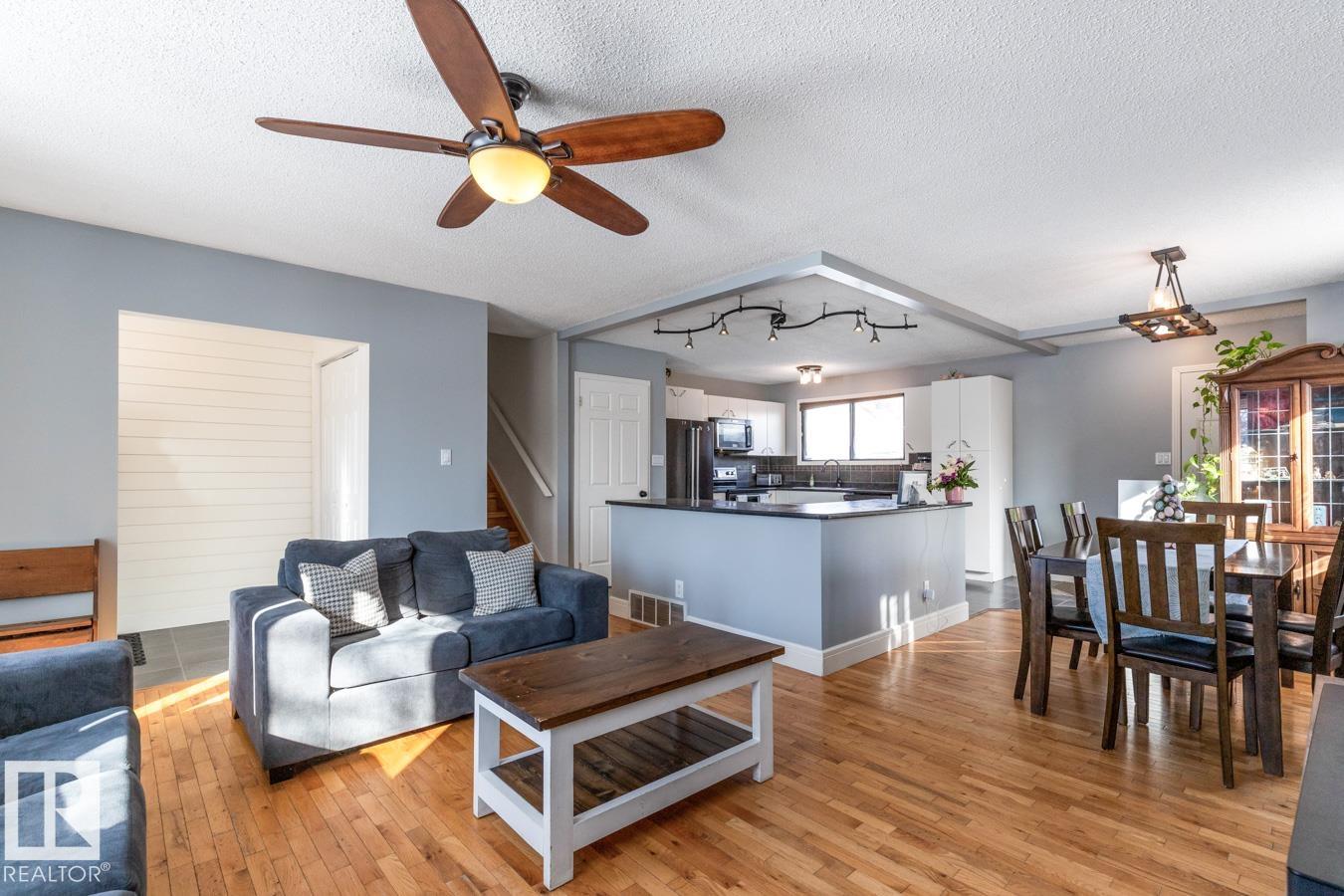 This 4-bedroom home offers over 1,570 sq ft of living space across three levels in a family-friendly neighbourhood near Sunshine Lake Park. Hardwood floors run throughout the bright, open main floor. The welcoming living room features a large bay window and fireplace, flowing into a spacious kitchen with stainless steel appliances and modern finishes, open to the dining area--perfect for everyday living and entertaining. Upstairs you'll find three bedrooms including the primary with a 3-piece ensuite. The two additional bedrooms feature charming wainscoting, and a full 4-piece bathroom completes the level. The lower level offers a bright family room with large windows, a beautiful brick fireplace with wood mantle, a fourth bedroom, and a 2-piece bath. The unfinished basement includes laundry, storage, and rough-in plumbing for a future bathroom. Enjoy the spacious backyard with green space and a double detached garage in this quiet community close to parks and amenities.