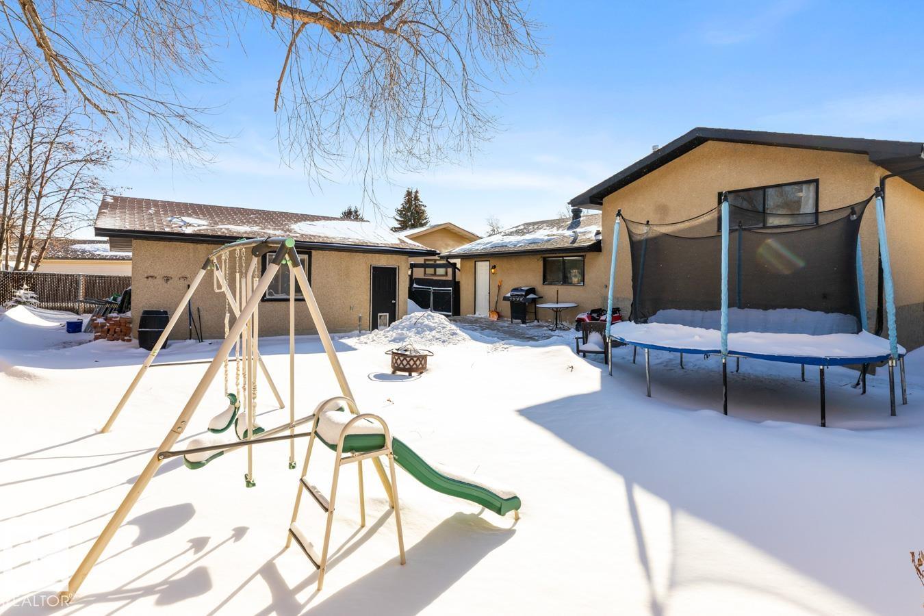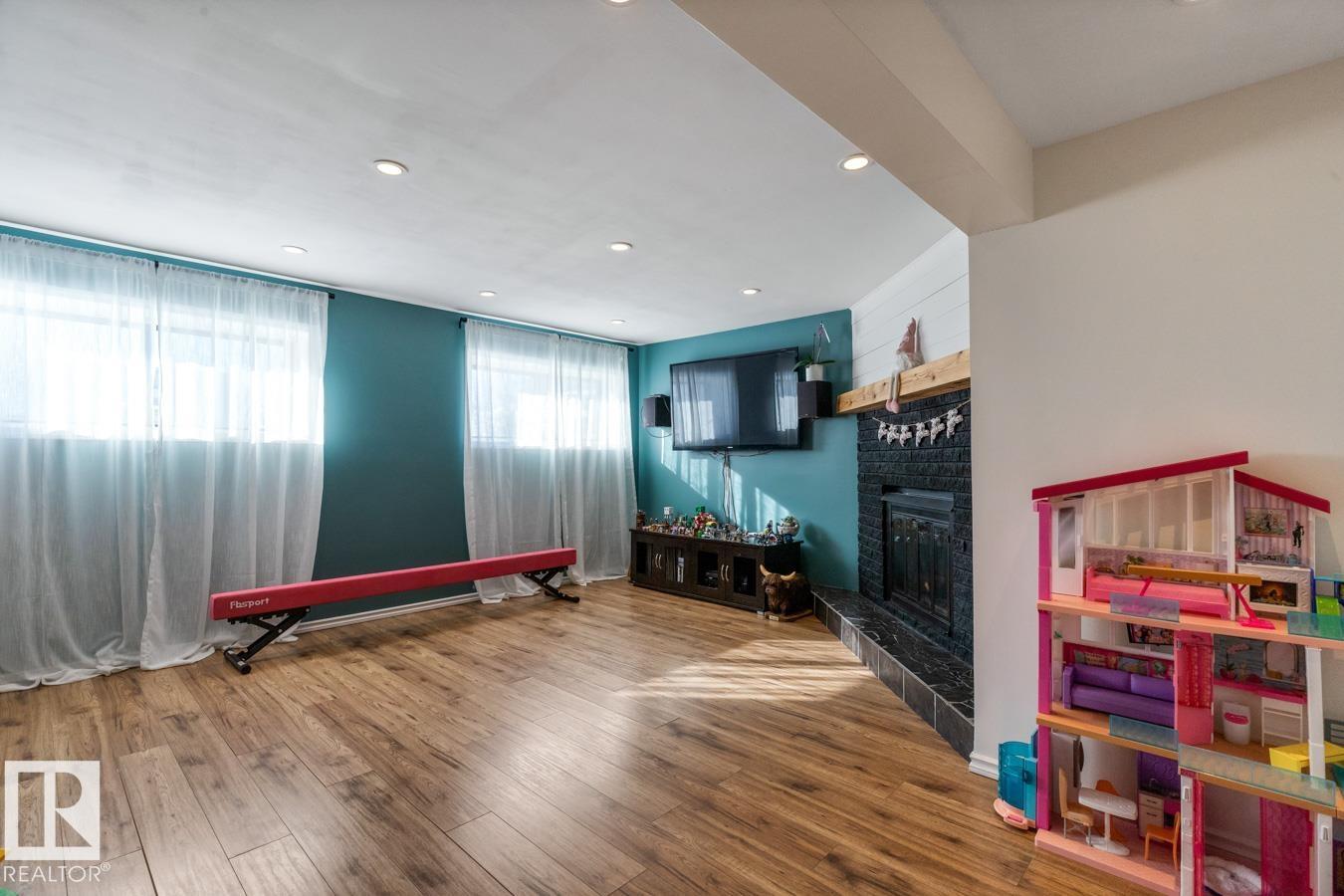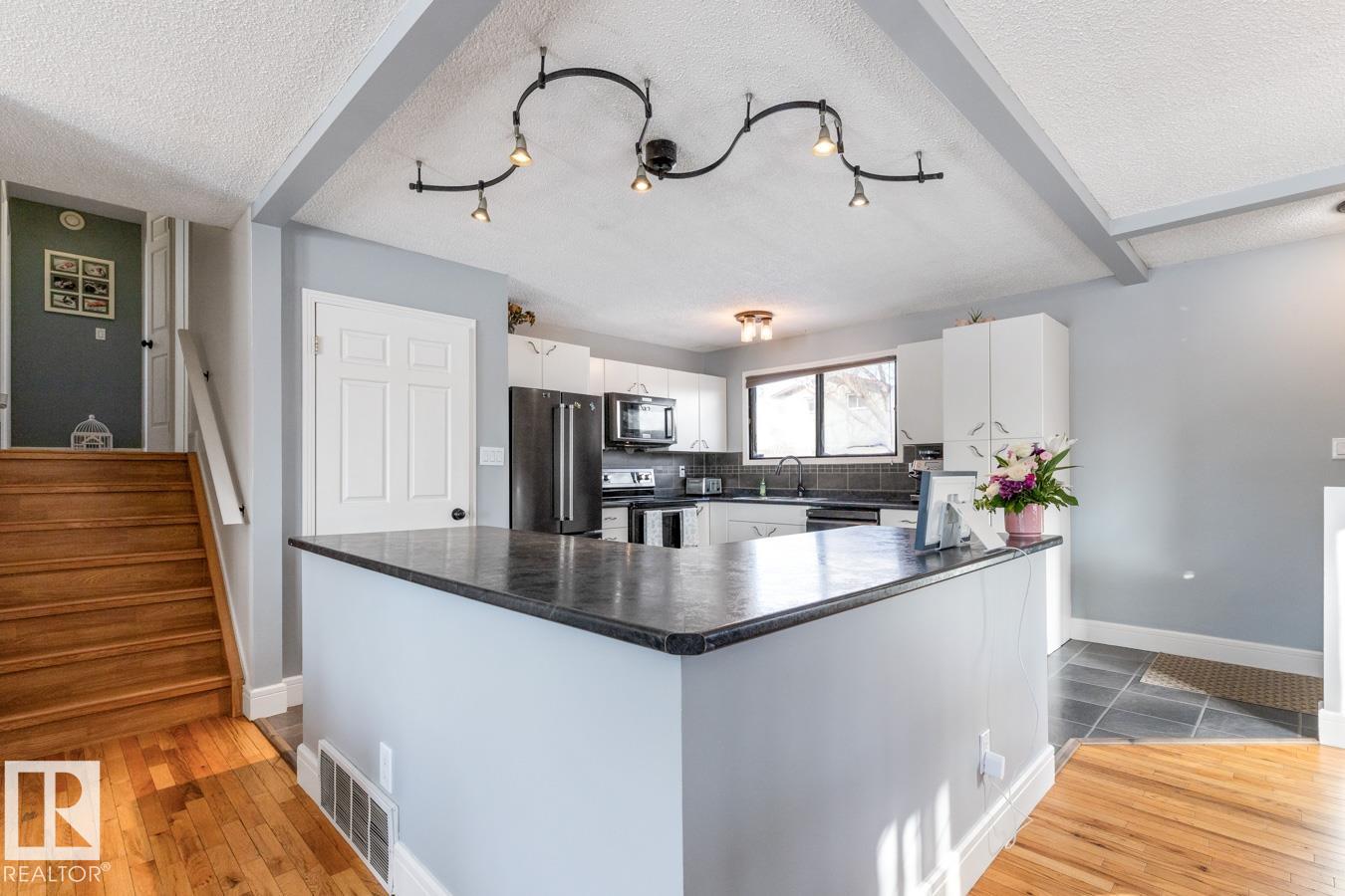 This 4-bedroom home offers over 1,570 sq ft of living space across three levels in a family-friendly neighbourhood near Sunshine Lake Park. Hardwood floors run throughout the bright, open main floor. The welcoming living room features a large bay window and fireplace, flowing into a spacious kitchen with stainless steel appliances and modern finishes, open to the dining area--perfect for everyday living and entertaining. Upstairs you'll find three bedrooms including the primary with a 3-piece ensuite. The two additional bedrooms feature charming wainscoting, and a full 4-piece bathroom completes the level. The lower level offers a bright family room with large windows, a beautiful brick fireplace with wood mantle, a fourth bedroom, and a 2-piece bath. The unfinished basement includes laundry, storage, and rough-in plumbing for a future bathroom. Enjoy the spacious backyard with green space and a double detached garage in this quiet community close to parks and amenities.