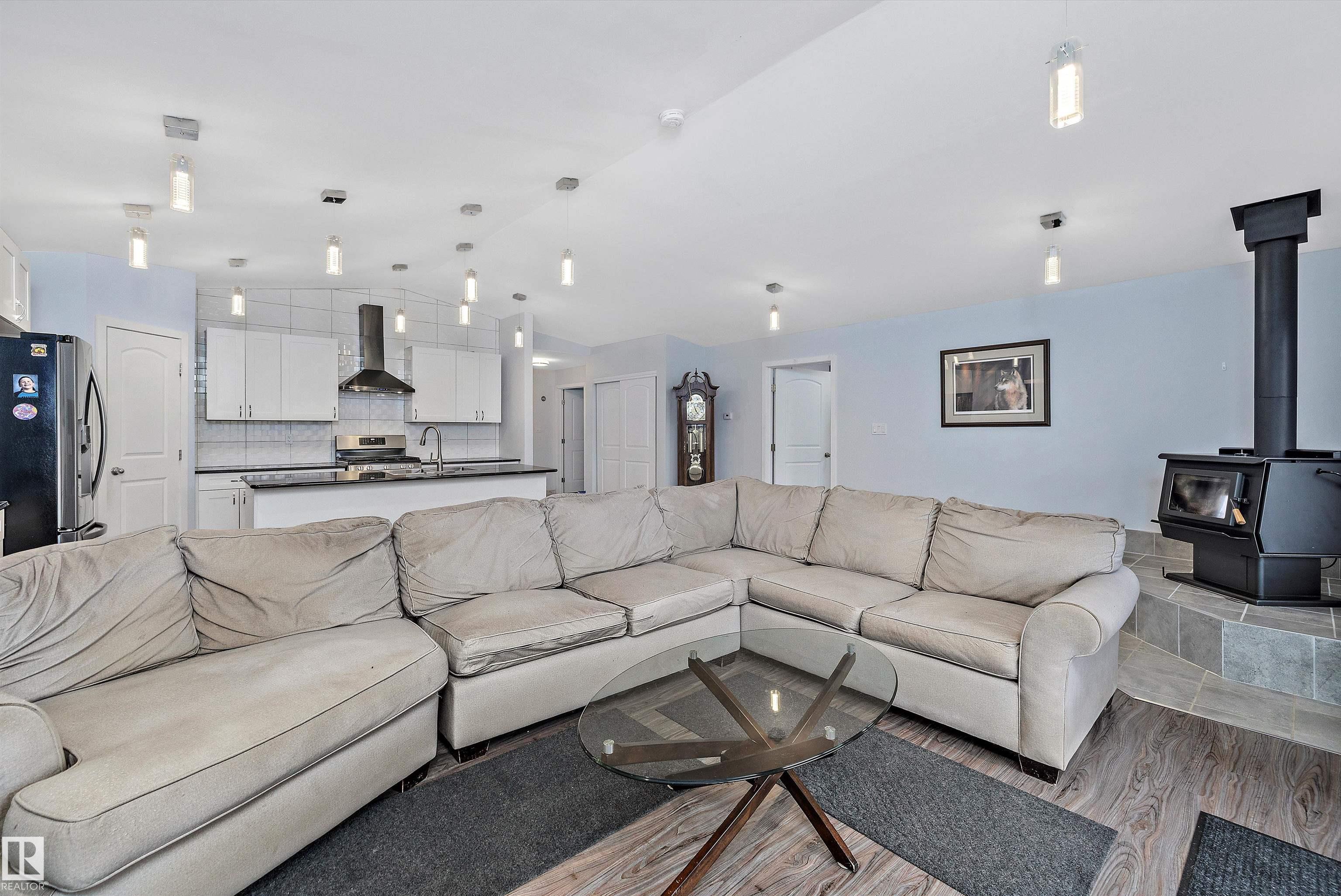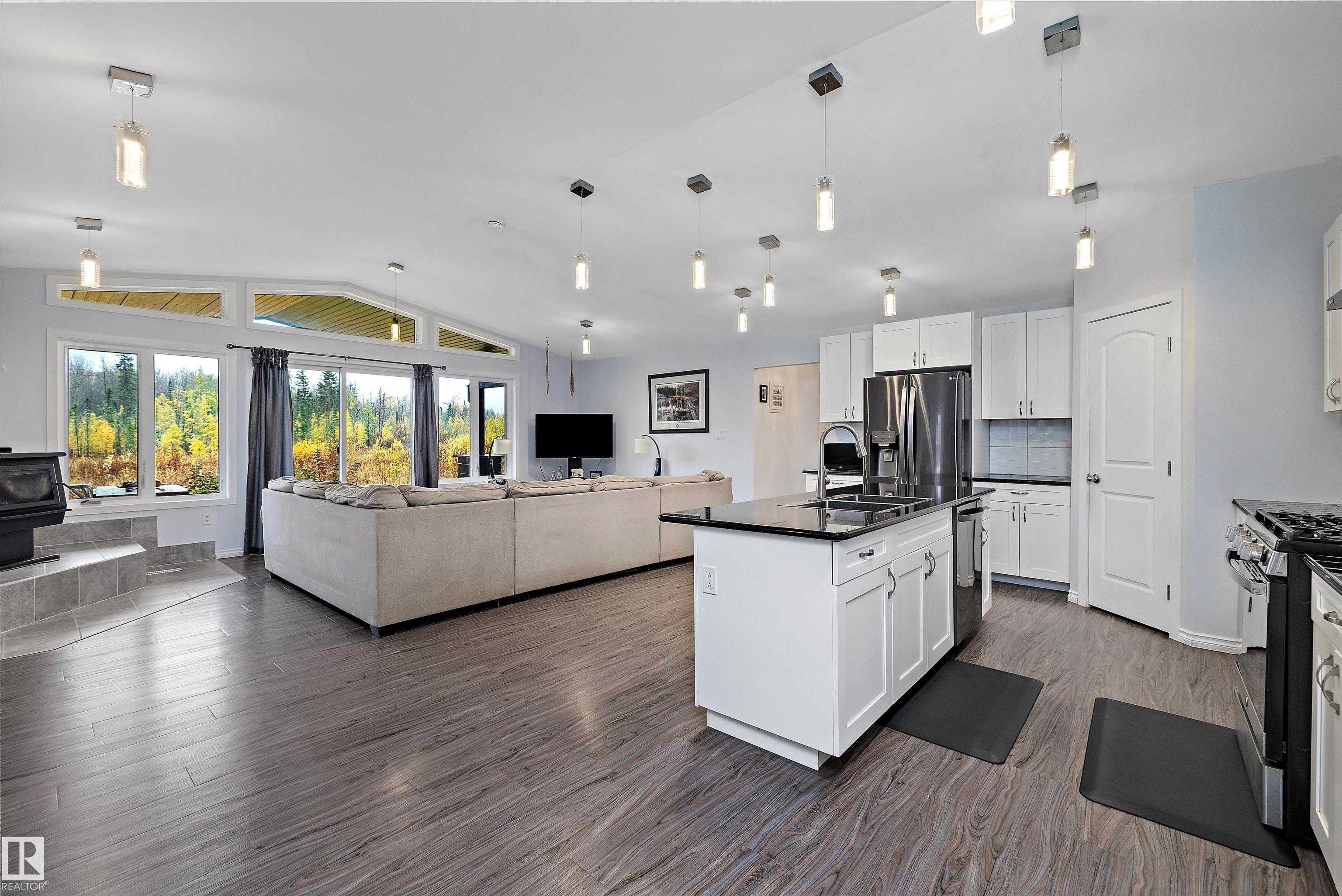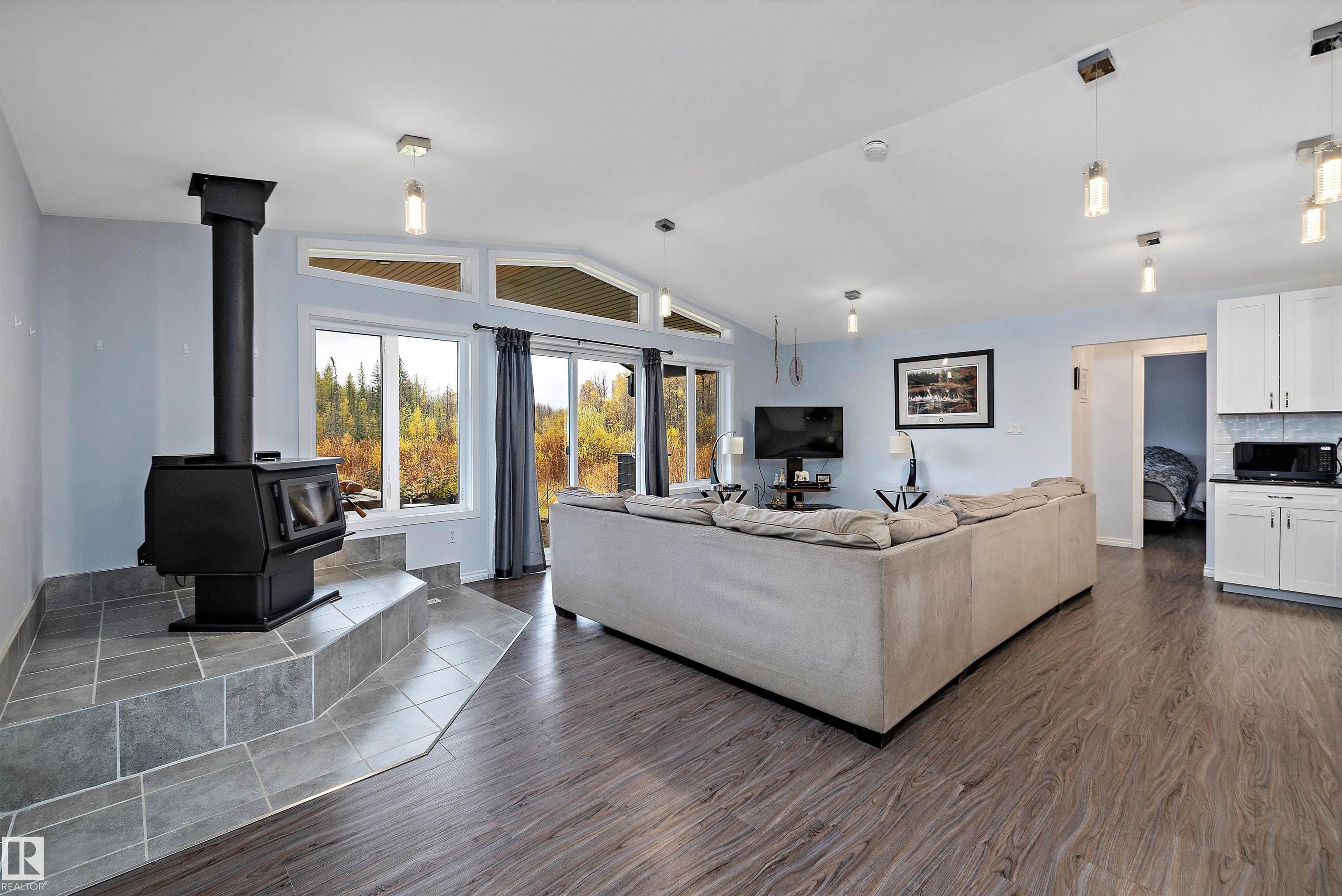Very Private 15.99 acres near Wabamun Lake in Lac Ste. Anne County. You are greeted by the stunning gates as you enter the property with an abundance of trees. This is rural living at its best. Wonderful 1791 Sq Ft bungalow with open concept and vaulted ceilings with 4 ft crawl space is sure to please everyone. As you enter, there is a separate dining area for entertaining that opens to the main area with vaulted ceilings. The large kitchen features a granite center island and Stainless steel appliances that overlook the spacious living room with large windows taking in the scenic views with a corner wood-burning fireplace. The large master bedroom has a patio door leading to the future patio. Large ensuite comes with a steam shower. Two more large bedrooms and 4 pc bath make up this desirable bungalow. This is a nature lover's dream!